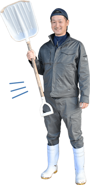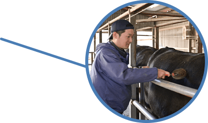 農場の見回りから始まります。牛の健康状態や餌場・水槽の確認を行います。床替えをして牛舎内を清潔に保ち、快適に過ごせるようにしています。週に3回ほど牛洗いをして出荷前の準備をします。